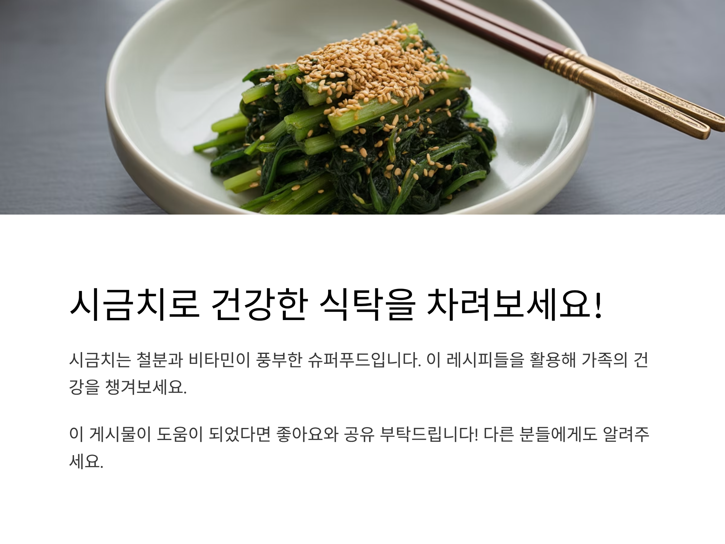 - 간은 최소화: 시금치 자체의 단맛과 향을 살리는 게 포인트.