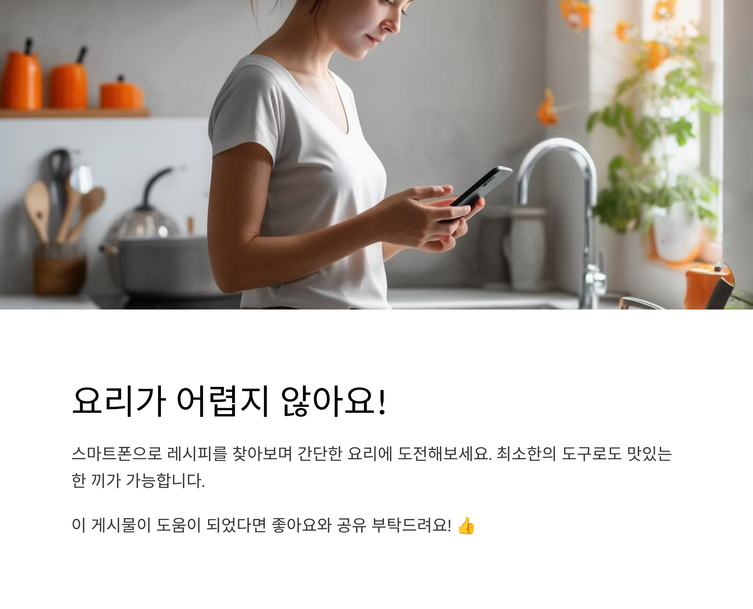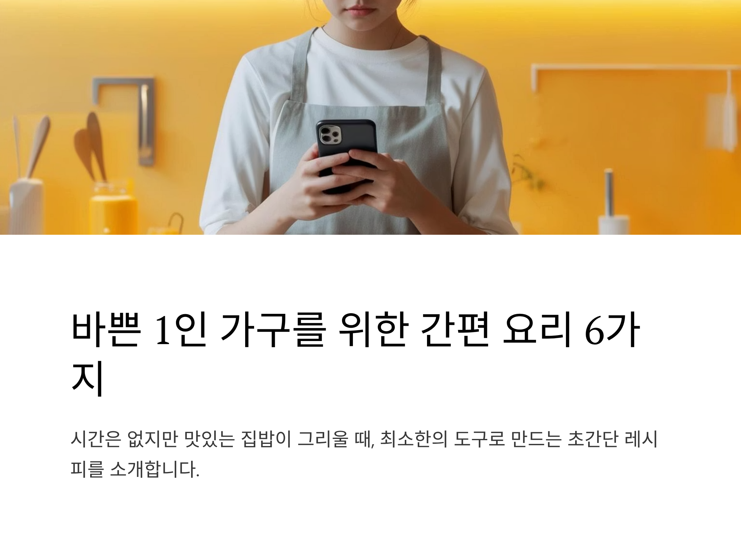 요리를 못 해도 괜찮아요. 처음엔 따라 하다가, 점점 나만의 스타일이 생기고, 요리가 즐거워집니다. 배달보다 저렴하고 건강하게 챙길 수 있는 레시피, 오늘부터 하나씩 실천해보세요. 여러분의 자취생활이 조금 더 따뜻하고 든든해지길 바랄게요!
