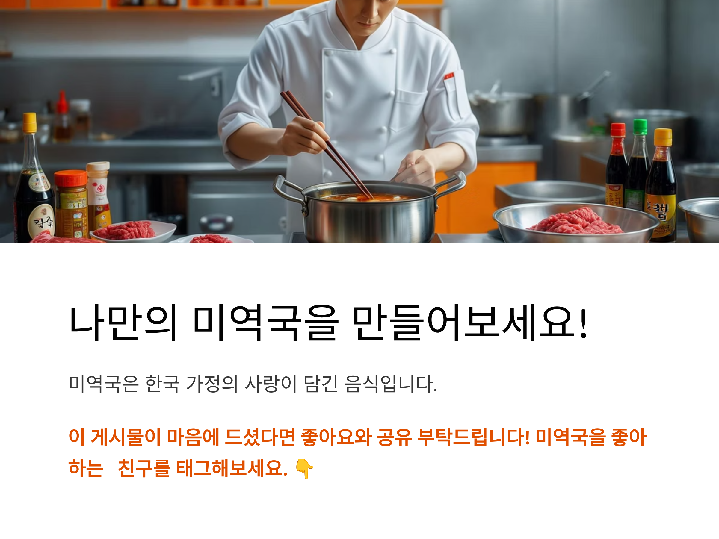 - 다양한 활용: 소고기 미역국, 바지락 미역국, 북어 미역국 등