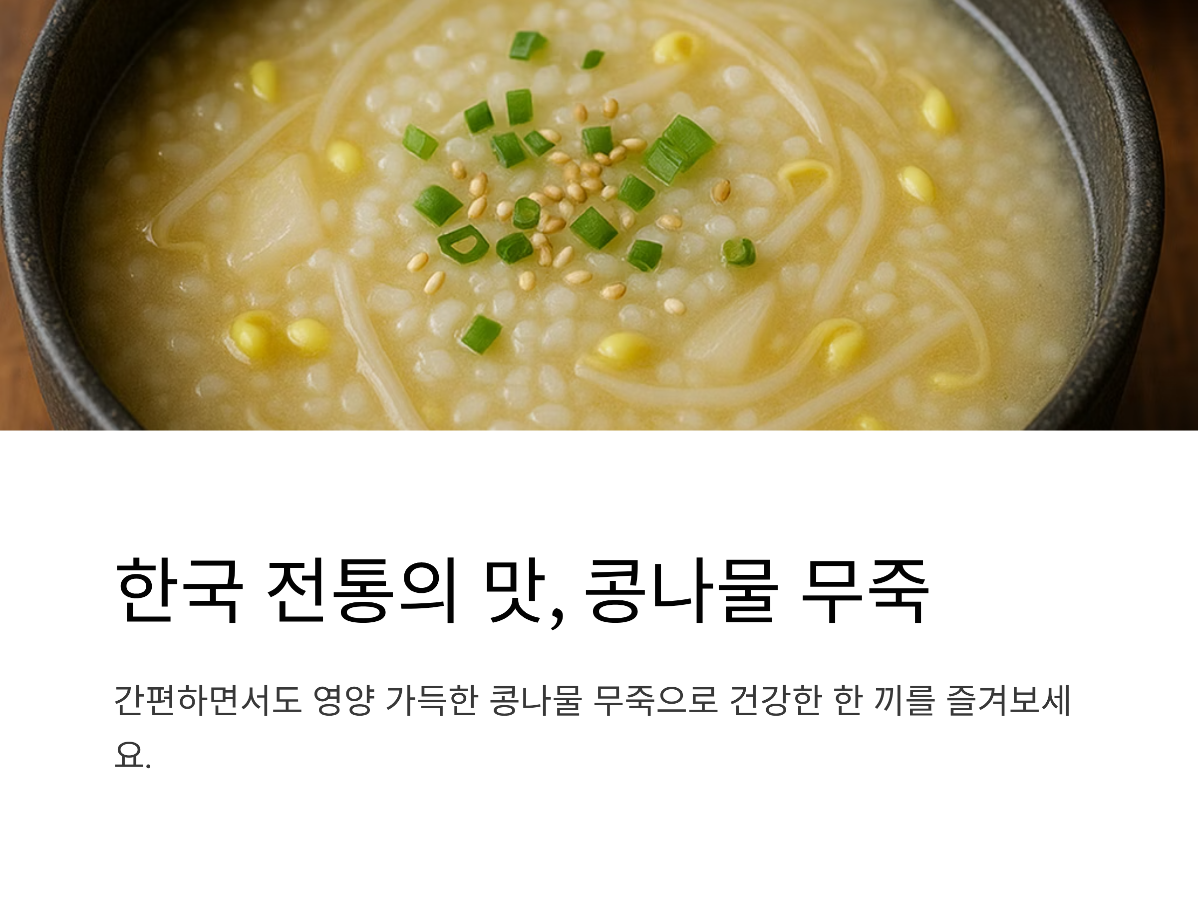 👉 오늘은 집에서 쉽게 끓일 수 있는 콩나물무죽 레시피를 소개합니다.