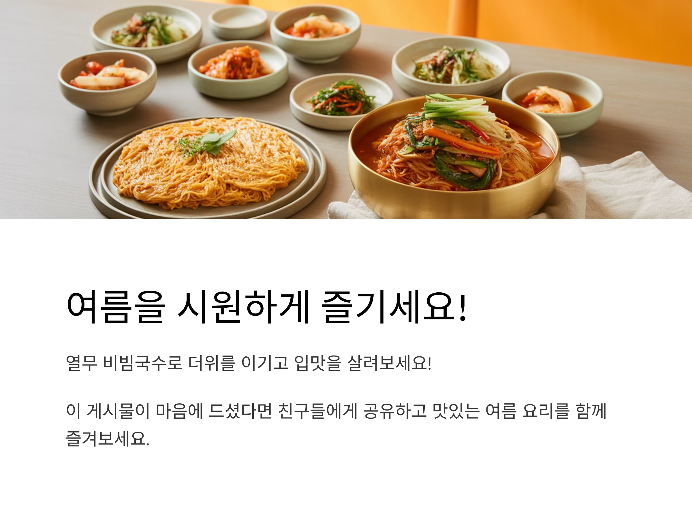 - 시원·매콤 → 여름철 더위에 입맛 돋우는 메뉴